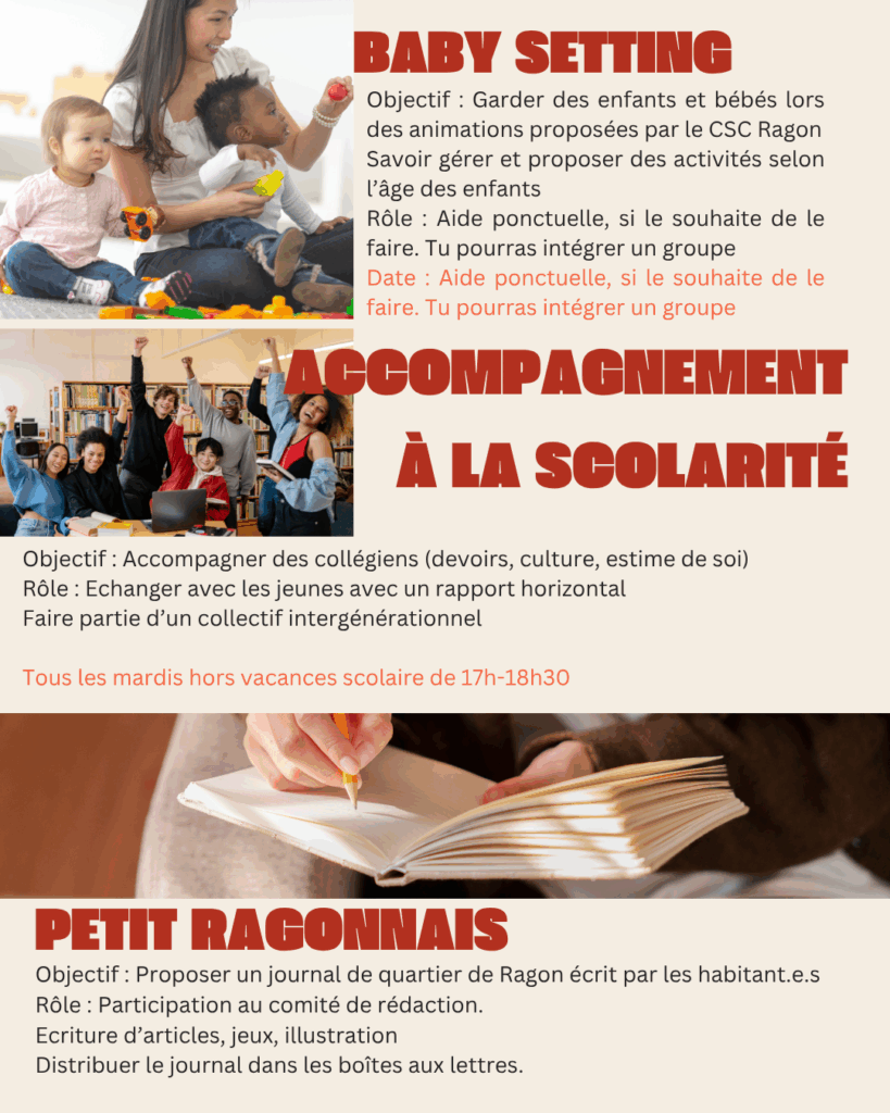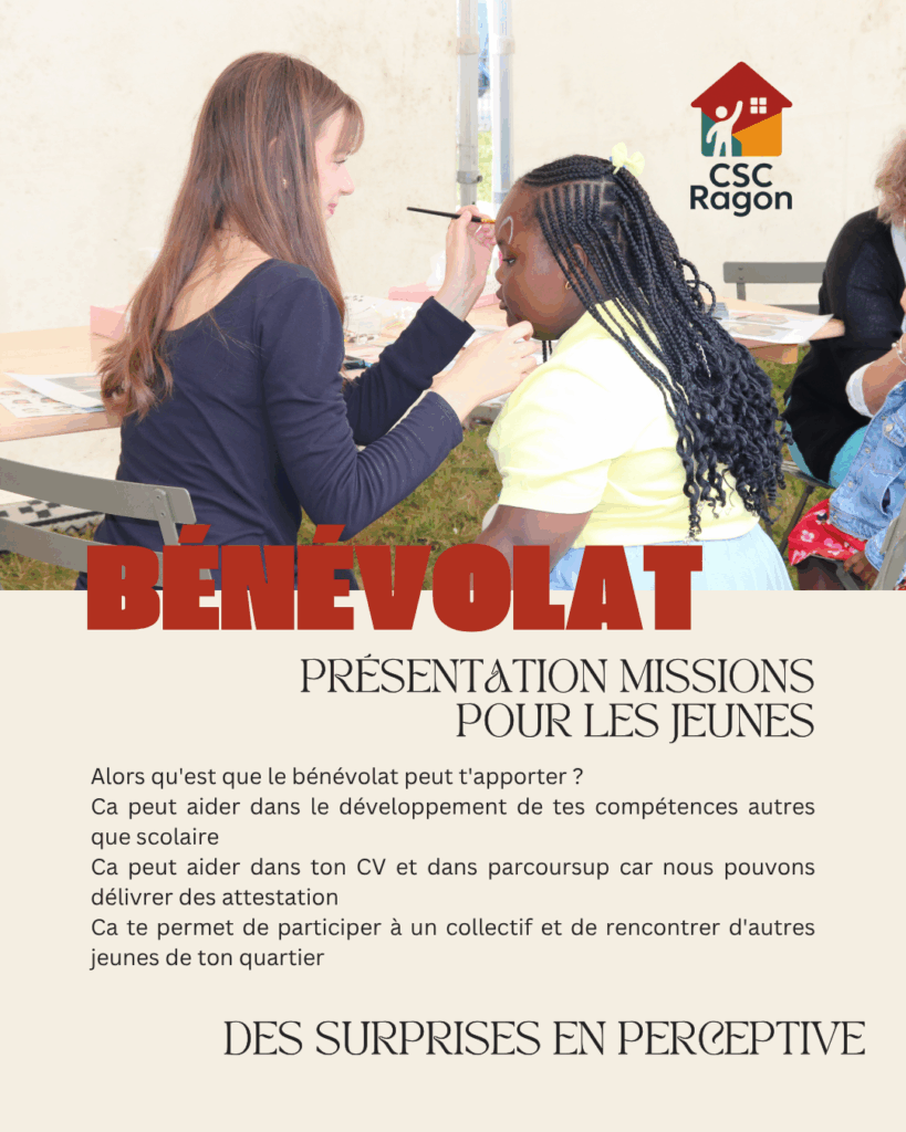 Envie de t’engager et rencontrer des jeunes de ton quartier avec le CSC Ragon ?
