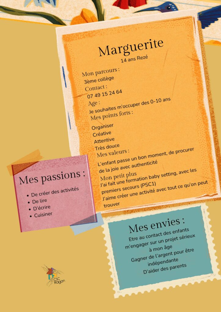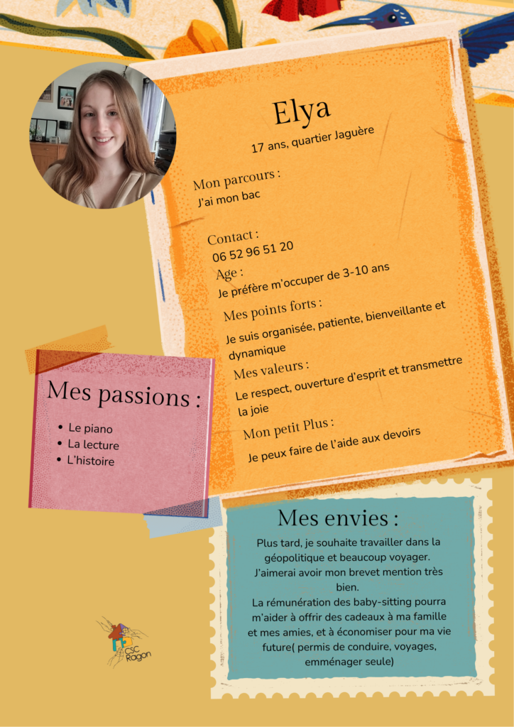 "Pendant la formation j'ai appris à gérer des situations comme les émotions des enfants ou à découvrir mes droits et mes devoirs en tant que baby-sitter. J'ai passé une super semaine avec des jeunes de mon âge et Clara qui met de la vie dans la formation. Elle permet aussi de mieux se connaître soi-même. Elle est dense tout en étant ludique, drôle et ce n'est pas comme une journée de cours. J'ai rencontré des jeunes aussi passionnées que moi, ce qui permet aussi de se créer un petit réseau. Je recommande et merci pour cette semaine !"