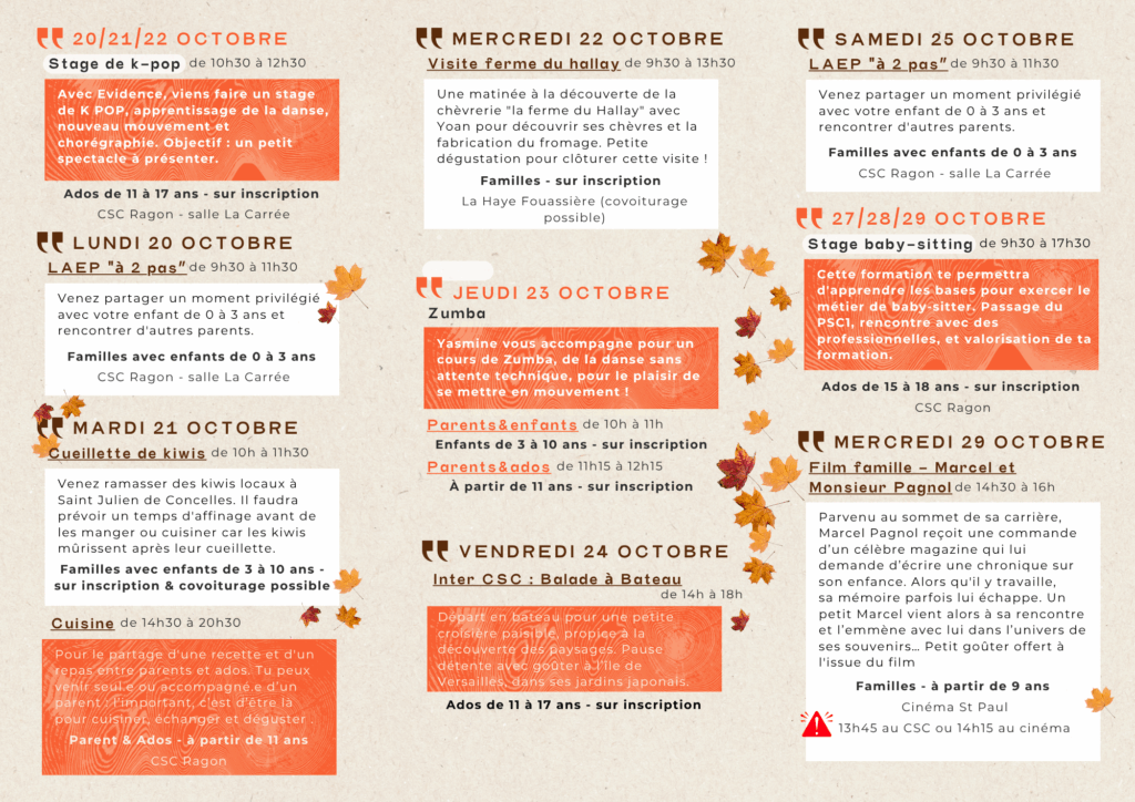 • Adhérents du CSC à partir du lundi 06 octobre,
